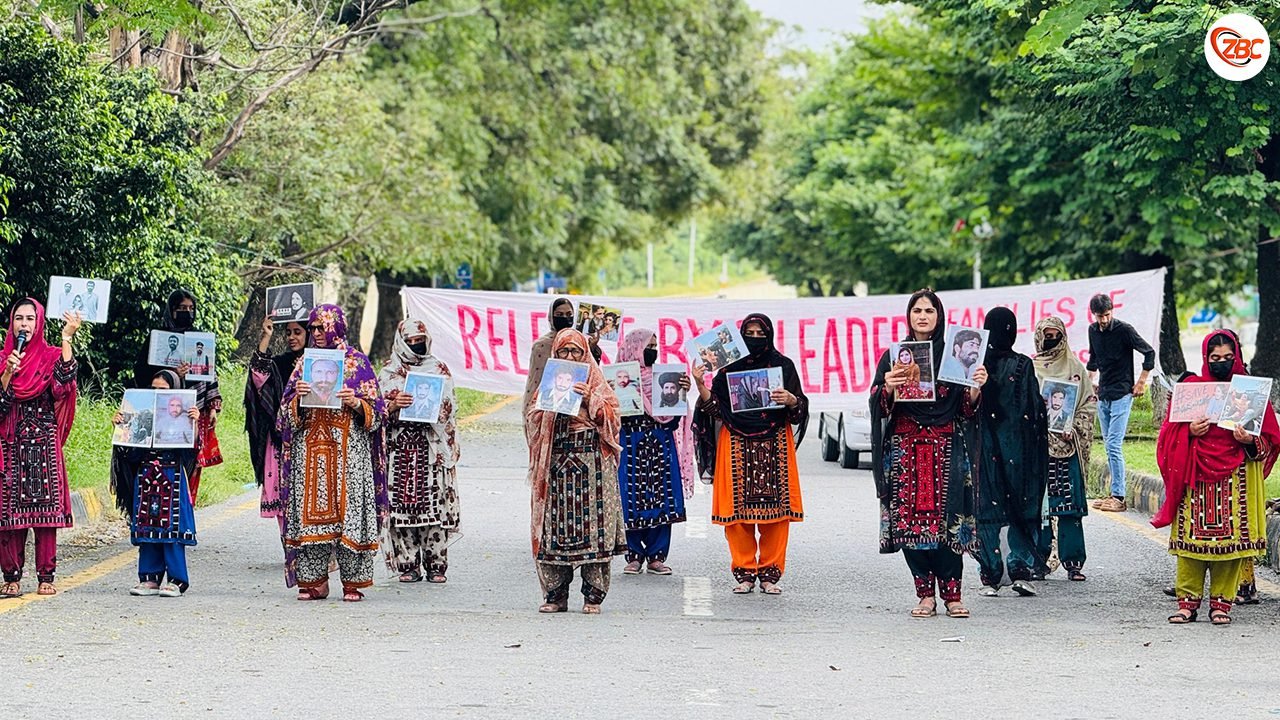 اسلام آباد ءَ بلوچ یکجھتی کمیٹی ءِ سروک ءُ زور بیگواھیں مردمانی کھولانی زھرشانی نندانک ءَ چل ءُ ھپت روچ سرجم بیتگ کہ انگت ءَ برجاہ اِنت۔زھرشانی کنوکیں مردماں مرچی ھم زھرشانی روانکے کش اتگ  کہ آیاں بی وائی سی ءِ سروک ءُ زور بیگواھیں مردمانی اکس، بینر ءُ پلے کارڈ  گون بیتگ اَنت۔