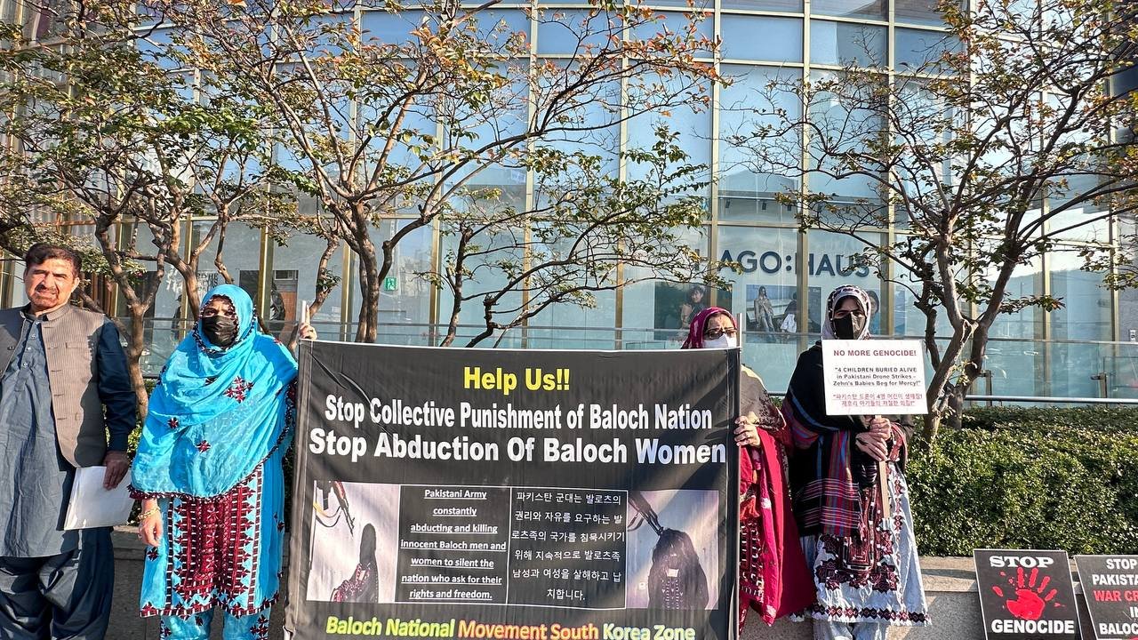 بلوچ نیشنل موومنٹ ( بی این ایم ) ءَ بلوچستان ءِ ھند زھری ءَ برجاھیں پوج ءِ انگر کنگءُ پاکستان ءِ زوراکیانی بگیری ءَ بوسان ءِ ناپوڈونگ ءَ زھرشانی کرتگ۔ زھرشانی کنوکاں پہ ھندی مردماں انگری ءُ کوریا زبان ءَ پنتاک بھر ءُ بانگ کرتگ ءُ آیان ءَ بلوچستان ءِ انسانی جاورانی بابتءَ سرپدی داتگ۔
