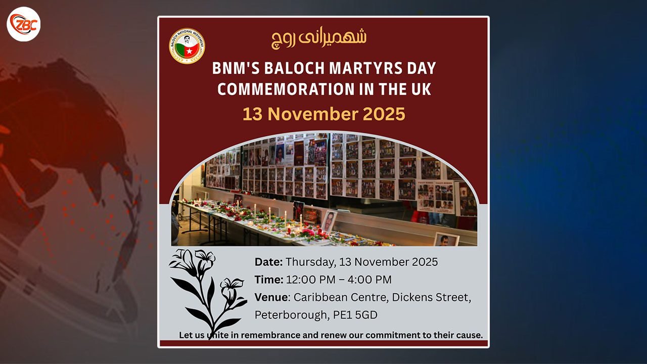 آئی ءَ گوشتگ کہ بی این ایم ءِ درسیں باسک، دوازدہ ءُ برتانیہ ءَ جاہ منندیں بلوچانی گون ءَ لوٹ کن ایں کہ آ 13 نومبر 2025 ءَ بلوچ شھیدانی سالروچ ءِ مراگش ءَ بھر بزور اَنت۔ ما ھواری ءَ ھما نہ ترسیں شھیداں ستک شانی ندر کن ایں کہ آیاں پہ وتی راجی آجوئی ءُ شرپ ءَ جھد کرتگ ءُ وتی جانانی دیمونی داتگ۔
