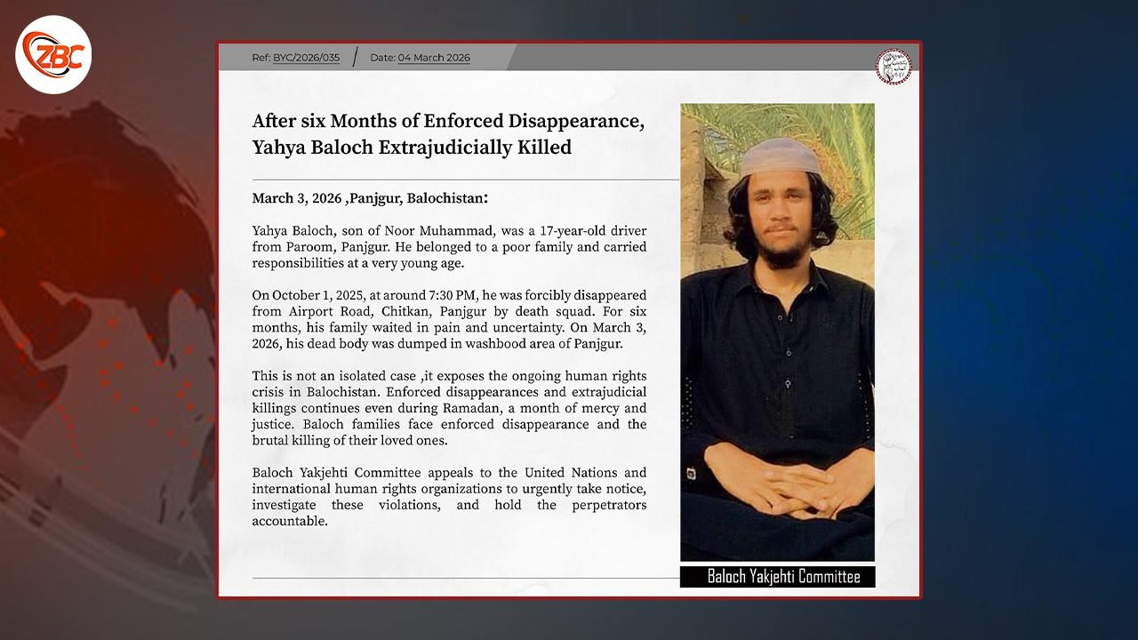 آئی ءَ گوشتگ کہ بلوچ یکجھتی کمیٹی گوں اکوام متھدہ ءُ میان استمانی انسانی ھکانی ادارھاں لوٹ کنت آ اے جیڑہ ءِ بابت ءَ زوت دلگوش گور بہ کن اَنت۔ اے لگتمالیانی بابت ءَ پٹ ءُ پول بہ کن اَنت ءُ ایشی زمہ واراں کانود ءِ رد ءَ جست بہ کن اَنت۔