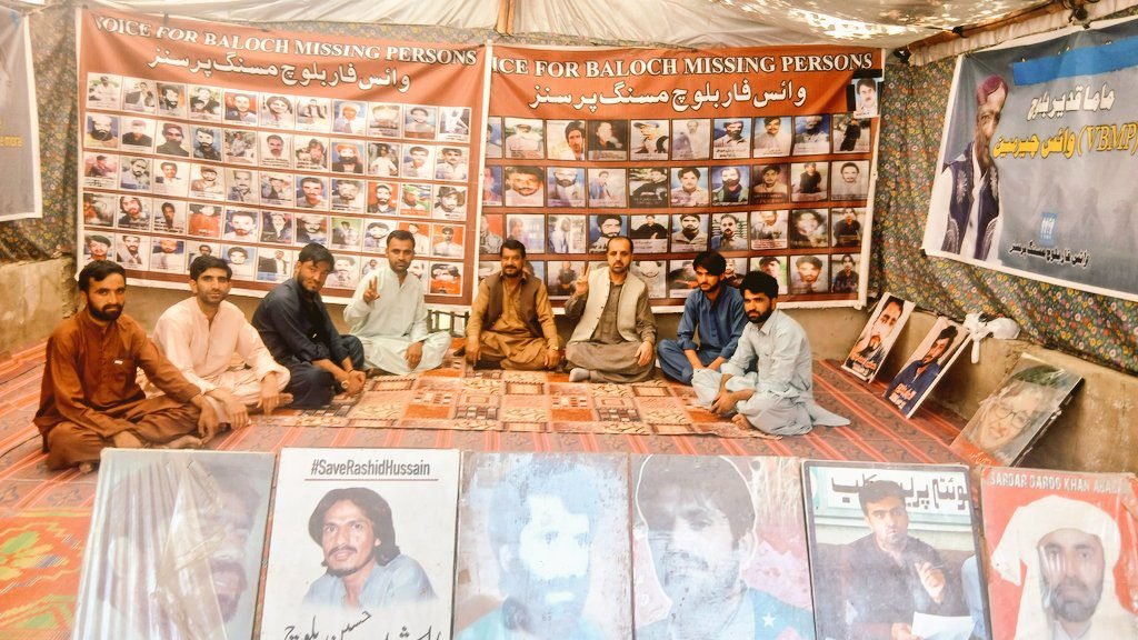 شال ءَ وائس پار بلوچ مسنگ پرسنز ءِ زھرشانی گدانءَ شال پریس کلب ءِ دیم ءَ 6144 روچ سرجم بوتگ۔ مرچی گل ءِ چیئرمین نسراللہ بلوچ گدان ءَساڑی بوتگ۔