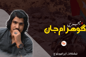 من وھدے کہ وتی چم رسانکدر ءَ شانک دات اَنت من چار اِت بازیں گھارے ءُ مکھیں ماتے ھمے جھد ءَ ءُ راجی مُچی ءَ گندگ بوگ ءَ اِنت، بلے من کہ اے کسانیں گھار سادیہ بلوچ دیست من مار اِت،کہ اے چو ھما گُل بی بی ءُ بانڑی ءِ چھرگ ءُ شُبین ءَ اِنت، منی چم کہ وھدے سادیہ ءِ گوشتانکاں کپت اَنت ، آئی ءِ چمانی تہ ءَ من یک آشوبے دیست کہ آیوکیں باندات ءِ یک تچکیں شیرزالے ءِ رنگ ءَ پہ راجی جھد ءَ گامزن اِنت، من ءَ گھار ءِ دیدانک ءُ گوشتانکانی تہ ءَ یک پگر ءُ سسایے گندگ ءَ اَتک، پرچا کہ گھار سادیہ اُمر ءَ ھم اینچو مزن نہ اِنت بلے ،پہ راجی جھد ءُ کردانی تہ ءَ یک کامریڈے گندگ بیت ، اے جُھد ءَ ھواریں گھار ، مات، کُل کامریڈ اَنت، بلے لھتیں انچیں شیرزال گندگ بنت کہ چو مھرنگ ءُ، سمّی ءُ ، سیما، ءِ رندگیری ءِ پدیانک اَنت، ایشانی تہ ءَ یک گھارے سادیہ انت، آئی ءِ تہ ءَ ھم ھمے جزبگ ءُ توکلانی ھاٹیگ گندگ بیت، کہ چو بولان ءِ کوہ ءَ مُھکم اِنت، اے جھد تھنا یکے ءِ بھر نہ انت،اے جھد ءَ کُل بلوچ ھوار انت دْرست منی چماں یک اَنت ،بلے انچیں مردم کردانی واھند بنت کہ آیانی ستاشانی زندگ اَنت کنگی اَنت، منی جھدکاریں گھار، کُل کہ مرچی جُھد ءَ ھوار اَنت ، روانک بہ بنت، نندانک بہ بنت یا کہ راجی زبان بہ بیت دْرست چو مھرنگ ءَ اَنت پرچا کہ راجی جُھدکار ھجبر بیگواہ ءُ گار نہ بیت ھمے میان ءَ ءُ من اے لبزاں کمایگ ءَ آں کہ باید کسان کسانیں گھارانی دلبڈی ءُ سکین دیگی اِنت ، یک راجے ءِ زندگ کنگ ءِ جُھد ءَ اَنت یک آشوبے ءِ آرگ ءِ جُھد ءَ اَنت ، بید ءِ زالبول ءَ ھم اے جھد ناسرجم اِنت ، جھد ءُ جنگانی تہ ءَ زالبولانی کرد گیشتر دیم ءَ کاینت پرچا کہ مرچی اگاں اے جُھد ءَ یک رنگے زُرتگ ءُ دیم ءَ اَتکگ گُڑا ھمے زالبولانی کرد اِنت کہ تپاکی ءُ یکجاھی ، یکمُشتی ءَ گوں دیم ءَ جنزان اَنت، کجام رنگ ءَ بہ چاریں مارا گندگ کیت، چو لُمّہ کریمہ ءَ، ڈاکٹر مھرنگ ءُ سمّی دین ءَ، بانڑی، ازگُل ءُ گُل بی بی ءَ بلوچ زالبول یک مھکیمیں چیدگے کہ مُدام زندگ دارگ بیت ءُ راجدپتر ءَ ابدمان بیت۔
