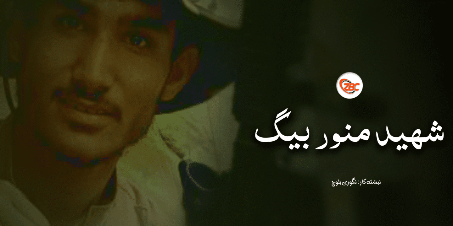 چہ کمو وھد ءَ رند من روگ ءَ اِتاں چہ وتی گس ءِ نیمگ ءَ، وھدے کہ من سر بوتاں من دیست کہ منی لوگ ءِ مردماں جاک ءُ شور ات۔ من جُست کُت چی بیتگ؟ بلے کس ءَ اے گپ گْوشت نہ کت۔ گڑا من پد ءَ وتی پرپٹ زرت پد ءَ شتاں کہ ھالے گراں کہ چی بیتگ، من وھدے بل بازار ءَ شت ءُ سر بوتاں یکے ءَ گْوشت کہ اے سنگتے شھید بوتگ۔ من جُست کُت کہ کے اِنت؟ آئی ءَ گْوشت کہ منور ءِ بیگ مھمد۔ گوں اے توار ءَ منی سر ءِ ھوش پورا شُت، من وت نزانت کہ من چی کنگ ءَ آں ءُ کُج ءَ روگ ءَ آں، گڑا گُڈی ءَ کمو ساھت ءَ پد سنگت شھید منور بیگ ءِ لاش آرگ بوت ءُ ما شُت اِیں کبرستان ءِ سر ءَ۔
