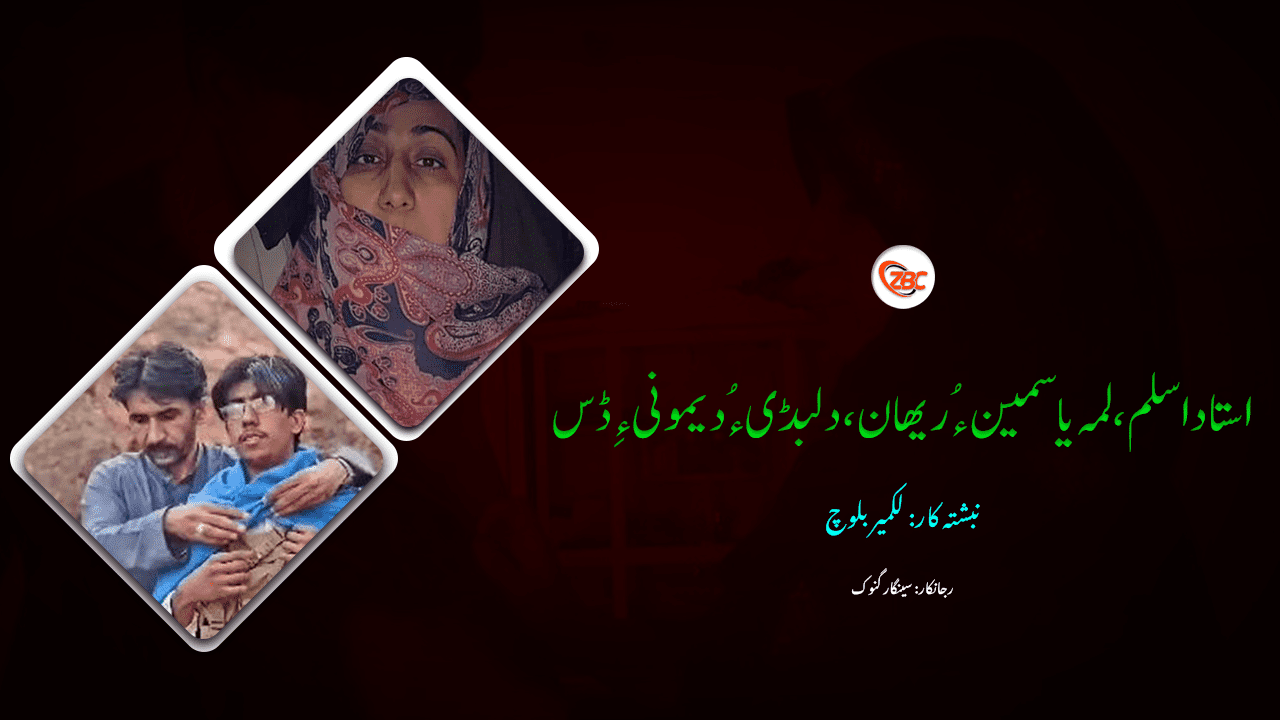 شھید جنرل استاد اسلم بلوچ، لمہ یاسمین ءُ آیانی چک شھید پدائی ریھان اسلم بلوچ ءِ دیمونی ءِ کسّہ بلوچستان ءِ راجدپتر ءَ یک انچیں دروَرے کہ آ ناں بس دلبڈی ءُ ارادگ ءِ ڈس اِنت، بلکیں اے گپ ءَ پدر کنت کہ وھدے یک بلوچ ھاندانے وتی سرزمین، وتی پجّار ءُ وتی راج ءِ آجوئی ءِ واستا وتی درست چیزاں کربان کنگ ءِ پیسلہ ءَ کنت گڑا آئی ءِ پرک، آیوکیں پدریچ ءِ سر ءَ مزن کپ ایت۔ شھید استاد اسلم ءِ شمار ھما راھشونانی تہ ءَ بیت کہ کجاماں وتی زندگی ءِ ھر ساھت وتی راج ءِ آجوئی ءِ واستا کربان کُت۔ آئی ءَ زانت کہ گوں گلامی ءِ تھاری ءَ بندوکیں راج ءَ را رُژنائی ءَ رسینگ ءِ ھاتر ءَ ھالی نارہ ءُ داوا بس نہ اِنت، بلکیں ایشی ءِ واستا کربانی دیگ لوٹ ایت۔ مشکل ءُ گرانیں راھاں روگ لوٹ ایت ءُ راج ءِ ھاتر ءَ جِند ءِ زندگی ءَ را پشت ءَ یلہ کنگ لوٹ ایت۔