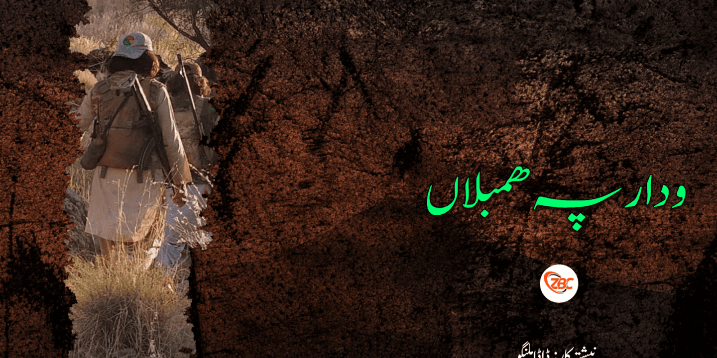 ھمبلاں شما اَنچین راھے پہ وت گِچین کُتگ کہ اے راہ ءَ تُنّ، گُژن، سکّی ءُ سوری، سکیں، بزگی، چہ درد ءُ جنجال ءَ پُریں راھے۔ اے راہ ءَ ھَرچ مردم پہ وت گِچین کُرت نہ کنت، اے راہ ءَ ھما مردم گچین کُت کناں کہ زندگی ءِ اسلیں مانا ءَ بہ زان انت۔ راج ءِ بزگی ءُ گلامی ءَ بہ مار اِیت ، زندگی کنگ ءُ زندگی گوازینَگ ءِ پرک ءَ بہ زانت، اے راہ ءَ ھما مردم پہ وت گِچین کنت کہ وتی نُگرھیں سراں کُربان کن اَنت۔ پہ بلوچستان ءِ آجوئی ءَ آ زان اَنت کہ ابید ء چہ آجوئیں ڈیھے ءَ بلوچ یک شریں ءُ شرپمدیں زندگی یے کُت نہ کنت، پہ شرپمند، وشیں ءُ اِیمنیں زندگی کنگ ءَ یک راجے ءَ وتی گلامی ءِ مُھریں سانکلانی پروشگ ءَ ھون دَریا، ساہ ءُ سرانی لڑے، پہ آجوئی ءَ ھر چیز کُربان کنگ لوٹ ایت، شما ھم ھمے ھمبلاں گوں ھوار اِت۔