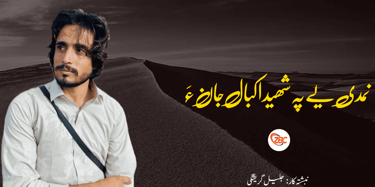 تئی پت مدام تئی اکس ءَ دیم ءَ کنت گُڑا آئی چمّانی اَرس پِٹ پِٹ ءَ رچ اَنت۔ اکبال جان تئی روگ ءَ چہ پد دْرچک ءُ دار ھمے گْواھی ءَ دے اَنت کہ اکبال اَچ شُما دلاں چہ ھچ بر در نہ روت، پرچا کہ اکبال جان زمین ءِ سالونک بوتگ۔ آئرا زمین ءِ گم پر بوتگ۔ آئرا وتی بلوچ راج پہ ارس ءِ گْوارگ ءَ دل نہ بوتگ۔ مارا تئی ھمے گپ مدام یات ءَ اِنت تو ھر وھد ءَ کہ وتی سنگتاں گوں دُچار کپتگ ئے تو بس ھمے یکّی گپ گْوشت کہ مارا وتی میتگ ءِ وانگ ءِ واستا جُھد کنگی اِنت۔