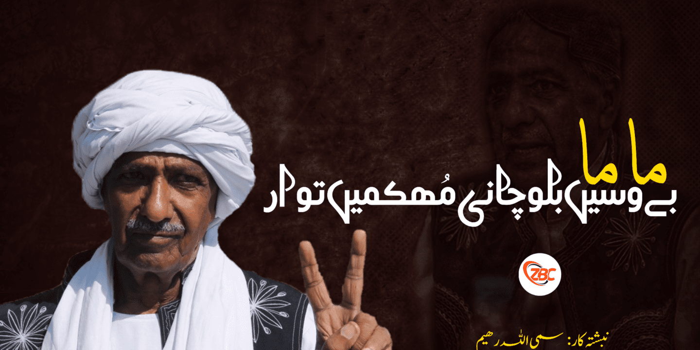 بلوچ سرڈگار ءِ آجوئی ءَ پہ جنَگ گوں گشادی ءَ برجاه اِنت، چُک ءُ کماش، مات ءُ گْوھار، ورنا ءُ وانندگ گوں زند ءِ ھمک پڑ ءَ بندوکیں لس بلوچ ھمک روچ چست کنگ ءُ گار بیگواه کنگ بیگ ءَ انت، کَسے ءِ جون ماں گیابانے ءَ دور دیگ بیت ءُ کسے ءِ ماں کوچگ ءُ وریرندگان ءُ کَسے ءِ جون پجّارگ نہ بیت ءُ بے نامی ءَ کل کنگ بیت۔ چوناھیا گْوش اَنت بلوچ وھدے گلام کنگ بیتگ گڑا ھما روچ ءَ اے درچ برجا انت، ھمک روچ چہ دومی روچ ءَ پہ بلوچ ءَ ترندتر ءُ نگوم تر انت، بس بلوچ انت گلامی ءُ آجوئی ءِ جنگ انت۔