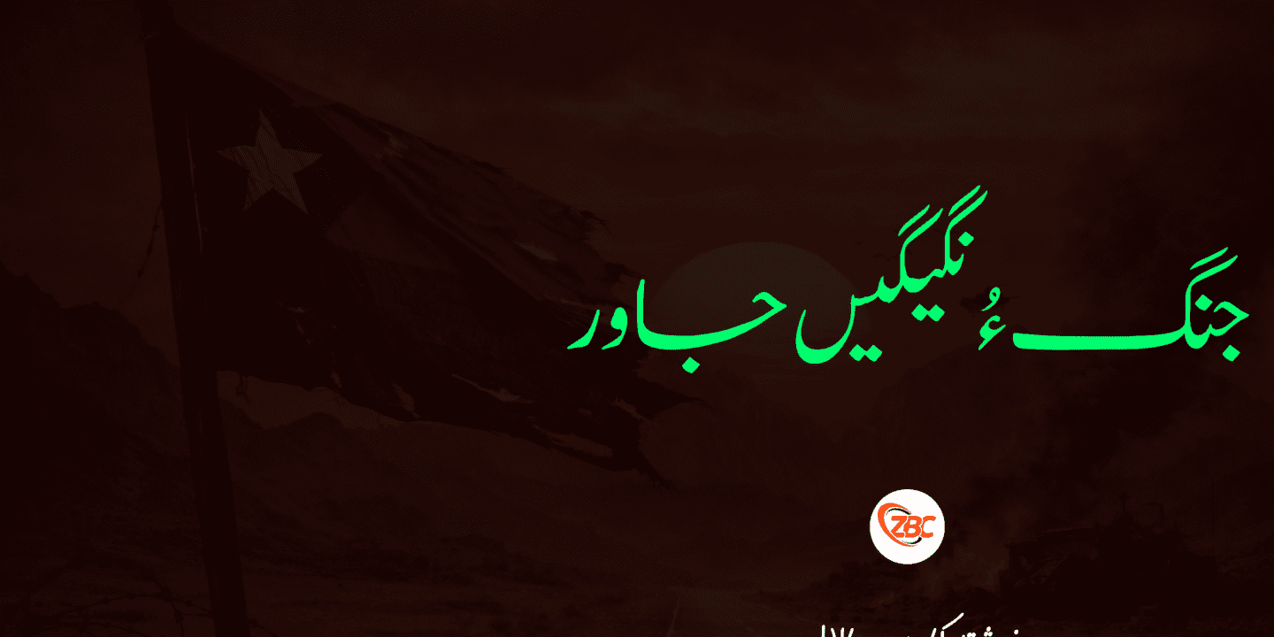 بلوچ ءِ ھمے پُسگ کہ پہ وتن نمیران بہ اَنت، آیانی مات ءُ کماش پہ پھرھ گْوش اَنت کہ مئے زھگ پہ گلزمین ءِ پھازگ ءَ کربان بوتگ، ھنے شرپ پہ راجی جنز ءَ اُمیتے کہ راج وتی پُسّگانی ندر ءُ کولیگ بوگ ءِ درگت ءَ پھر بند اِیت۔ مارا گوں ھمے دیمونی ءِ لیکہ ءَ وتی راجی جنز مھکم ءُ دکم ءَ جُنزگی انت، پرچا کہ مئے سیت ءُ راجی باندات گوں ھمے جھد ءَ جنگ ءَ بندوک انت۔ اگاں ما چو وتی شھیدانی رنگ ءَ کربانی ءِ پلسپہ زندگ داشت گڑا مارا اے زوراک داں ابد گلام داشت نہ کنت، ءُ مئے کربانی آجوئی ءِ چراگ بیت ءُ دْرپش اِیت۔