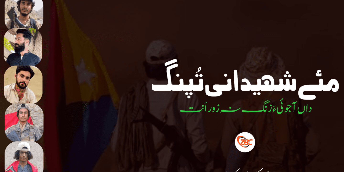 وھدے کہ ما وتی چماں پچ کن اِیں گُڑا مئے چمانی دیم ءَ بلوچستان ءِ سُرمگیں کوہ کپ اَنت، ھما کوہ کہ مرچی آئی ءِ بچّ ءُ جنک پہ آئی ءَ وتی ساہ ءُ سراں کُربان کنگ ءَ اَنت ءُ پہ آجوئی ءَ جُنزگ ءَ اَنت۔ مرچی ھمے بچّ ءُ جنکانی داتگیں کُربانیاں اے سرڈگار گوں زگریں ھوناں سبزینتگ۔ اے ھما سالونکیں بچّ ءُ بانوریں جنک اَنت کہ گُلامی اِش شھمات کُتگ ءُ پہ سرڈگار ءِ رکّینگ ءُ آئی ءِ آجو کنگ ءَ نہ شپ چار اَنت ءُ ناں کہ روچ، نہ تبد چار اَنت ءُ ناں کہ سارتی۔ گُڑا اے ھمے سرمچنڈیں سرانی رِتکگیں ھون ءُ ھیدانی برورد اِنت کہ مرچی دُژمن بے سوب بوگ ءُ پہ تچگ ءَ لاچار اِنت، اے ھمے سرمچارانی داتگیں کُربانی اَنت کہ مرچی لگور ءُ ھونوایں دُژمن وتی لوگ ءَ اُوں مجگی نادْرہ جوڑ بوتگ ءُ وت ءَ چہ اندر ءَ وران اِنت۔ اگاں مرچی اے سر مہ بوتیناں گُڑا نہ ایوک مئے سرڈگار درمداں وتیگ کُتگ اَت، بلکیں زُبان، دود ءُ ربیدگ ءُ راجی پَجّار اُوں پامال کُتگ اَت، ءُ مرچی دُژمن مئے مات ءُ گْوھاراں کم شرپ کنگ ءَ اِنت۔