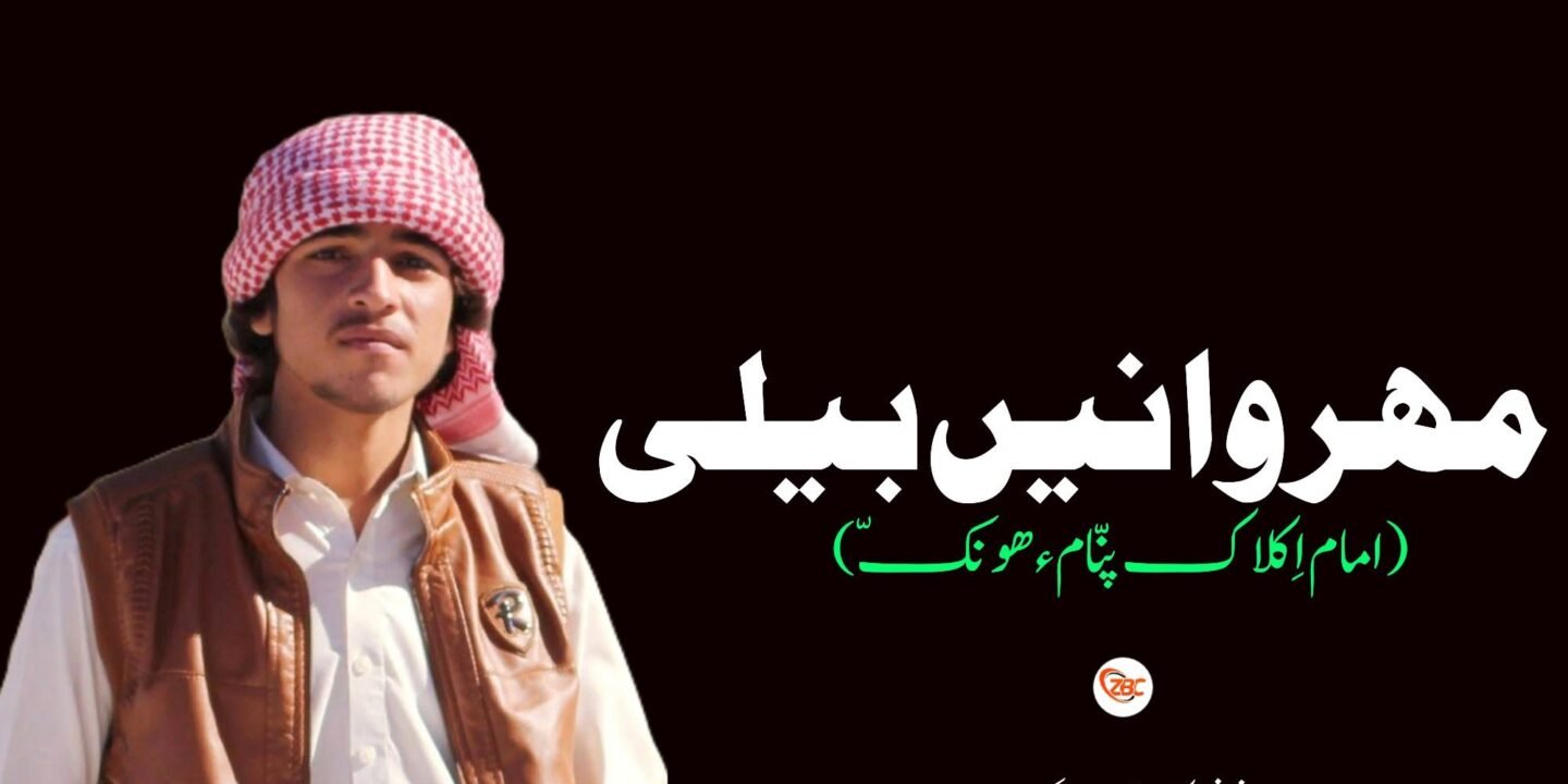 ھر وھد ءَ کہ براتانی پدائیانی ھال من اِش کُت مدام چارگ ءَ اِتاں کہ بوت کنت منی مھروانیں بیلی گون بہ بیت، انوگیں جنگ ءَ اُوں من انچوش چارگ ءَ اِتاں کہ اناگت ءَ مھروان ءِ اکس منی دیم ءَ اتک۔ من چٹ دگہ وڑ بوتاں کہ تو یار بائد وتی ھمبل یل مہ کتیں، دریگتیں کہ ما اے جنگ ءَ ھوار ءُ یکجاہ بہ شُتین اِیں گھتر اَت۔ پمیشکا منی مھروانیں بیلی تو سک گیر کائے، سد آپرین اِنت ترا گوں نرمزاریں ھمبلاں ءُ شُمئے جھد ستا کرز اِیت۔ منی مھروانیں بیلی من نابزانتیں مردمے آں، منی کِرّ ءَ اے وڑیں گال نیست کہ پہ شما کارمرز اِش بہ کناں، بس منی یکُیں دُوا اِنت کہ کلیں شھید گوں تو ھوار باگیں بھشت ءَ بہ بات اَنت ءُ مکھیں وتن آزات بات۔